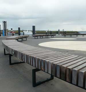 Gebaseerd op de FalcoMetro bank zijn onderstaande banken geproduceerd. De gemeente Schouwen Duiveland had duidelijk voor ogen hoe het straatmeubilair in Bruinisse er uit moest komen te zien. Falco heeft vijf zitbanken zonder rugleuning ontworpen en geproduceerd. De banken hebben een gebogen vorm en een lengte van vijf meter.